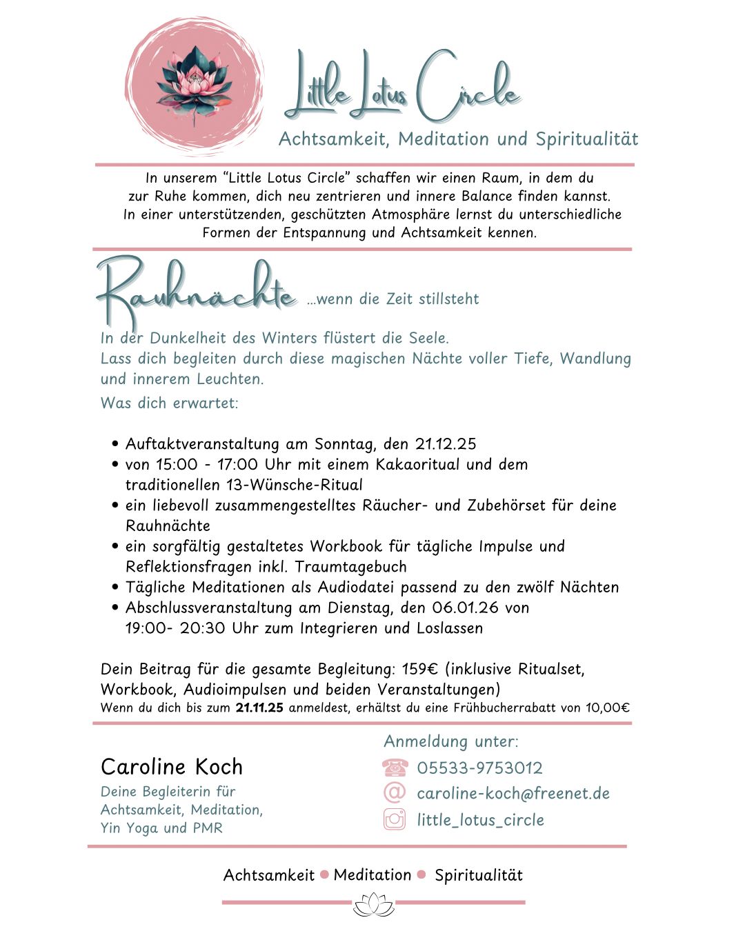 Stärkende Übungen für den Beckenboden kennenlernen und in den Alltag einbauen. Plätze: 8Kosten: 19,- € Termin: 25.Oktober 202514:00 - 16:00 UhrLeitung: Andrea Litterscheid